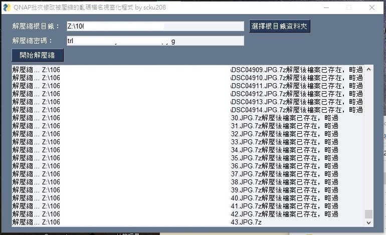使用開源的QNAP_7z_unzip_rename.exe(原始碼與載點請參考酷爸部落格)