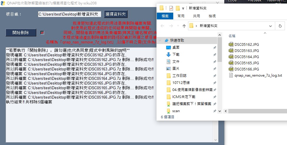 使用開源的QNAP_7z_remove.exe刪除壓縮完畢後的7z(原始碼與載點請參考酷爸部落格)